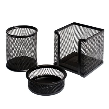 Ebat: 8x9.5 cm kalemlik, 8x3 cm ataşlık, 10x10x8 cm kağıtlık Paslanmaz metalden üretilmiştir, siyah renklidir. 3 gözlü set ile masanız her zamankinden daha düzenli olacaktır. Cildinize zarar vermemesi için özel kaliteli metal ile üretilmiştir. Masadan kaymaması ve çizmemesi için Latex tabanlıdır.