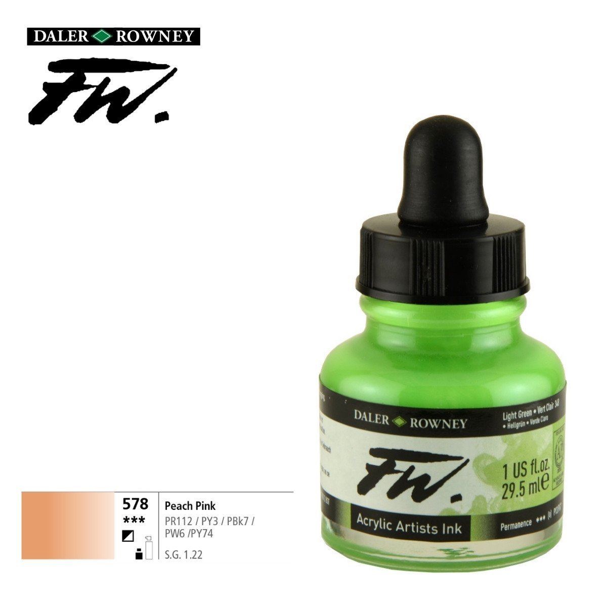 Daler Rowney Likit Akrilik (Pistole) Mürekkebi FW Ink 29.5ml 578 Peach Pink (Flesh Tint)