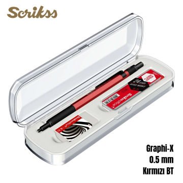 0.5 mm (bu ürün), 0.7 mm ve 2.0 mm kalem uç alternatifleri bulunan Scrikss Graph-X, kademeli özel mekanizması sayesinde tepesine basıldığında ucun yere düşmesini önlüyor, kırılmadan uzun süre kullanılmasını sağlıyor.