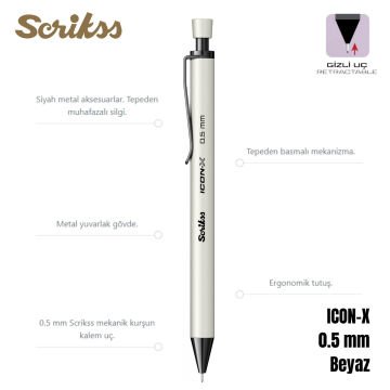 Scrikss Versatil Kalem Icon-X 0.5mm Beyaz özellikleri nedir?